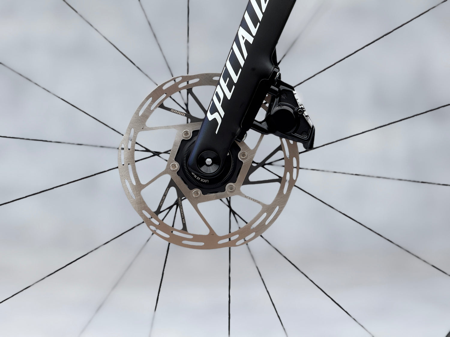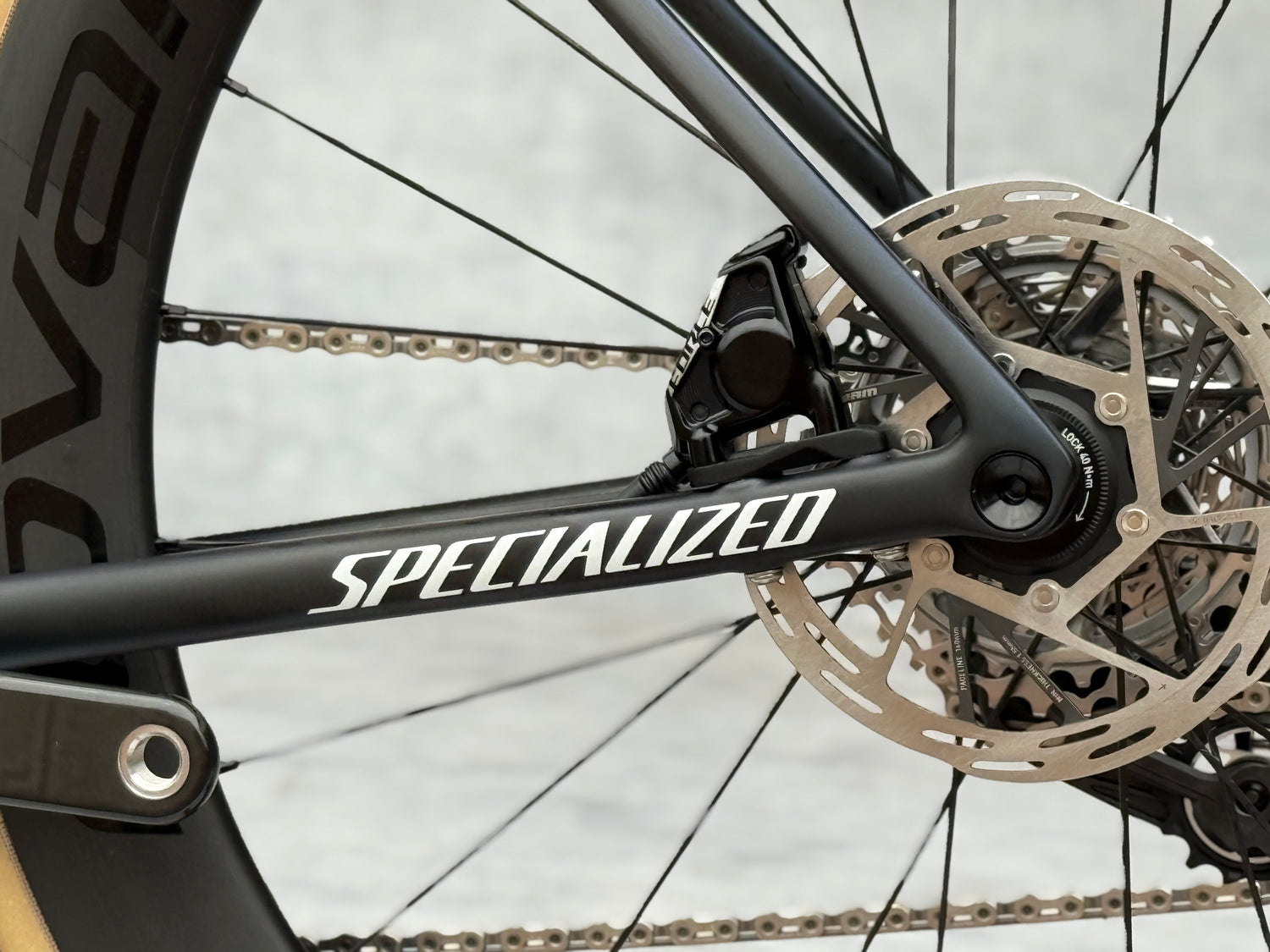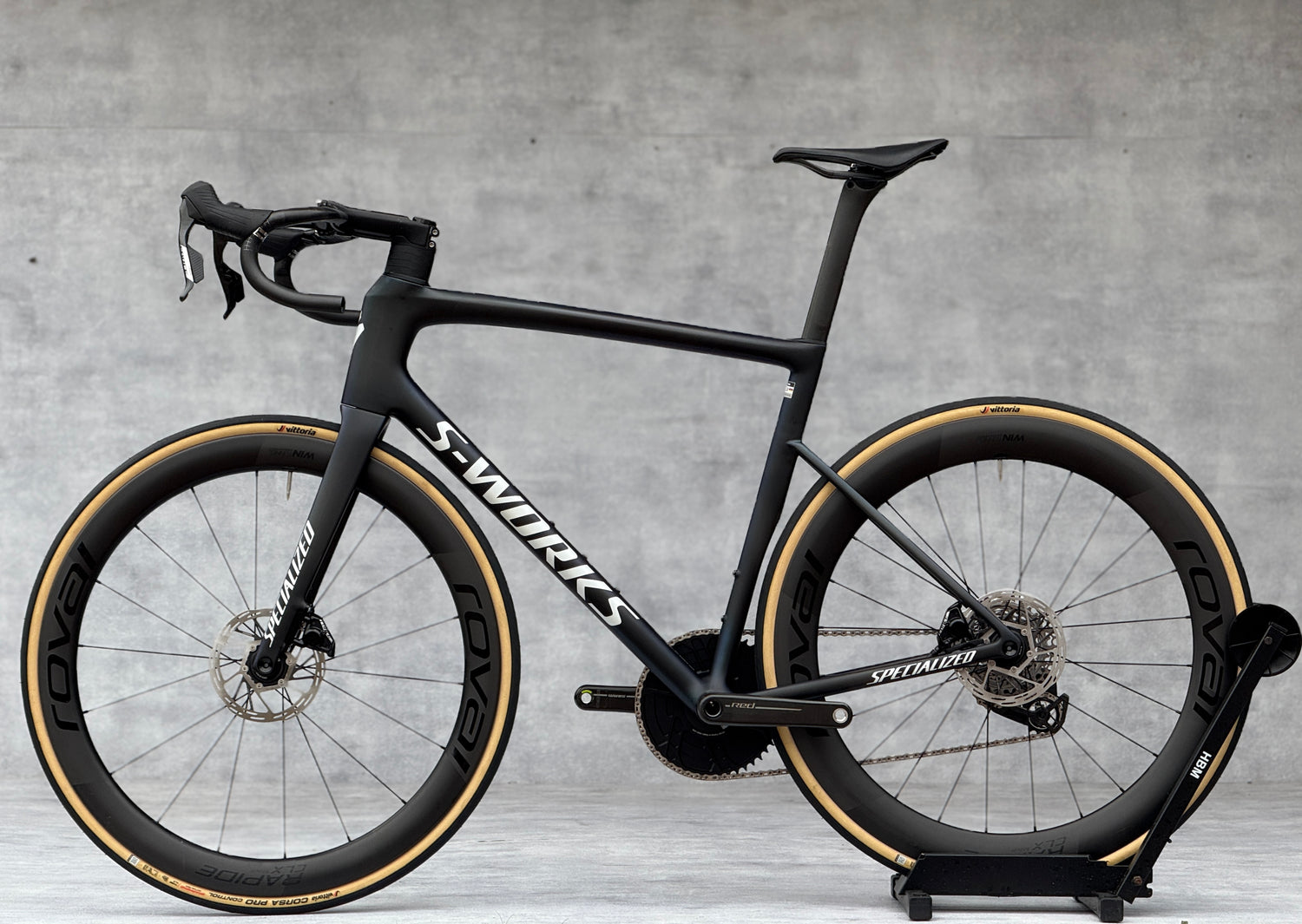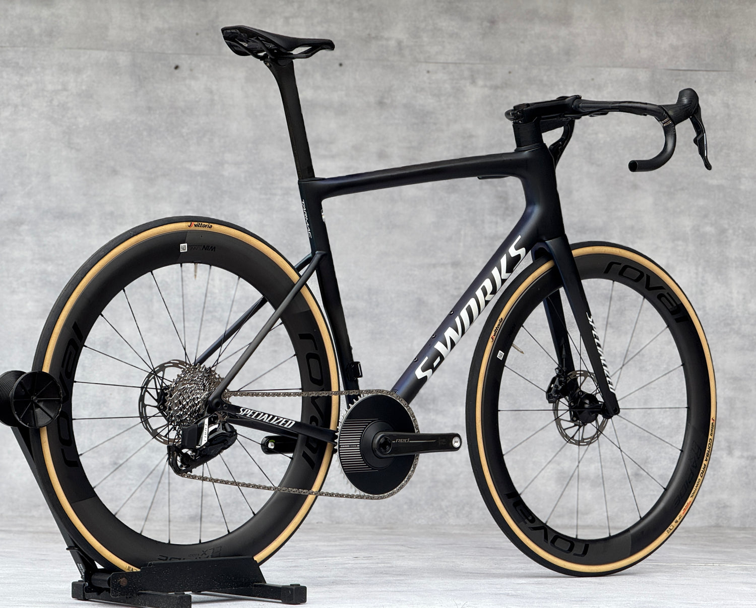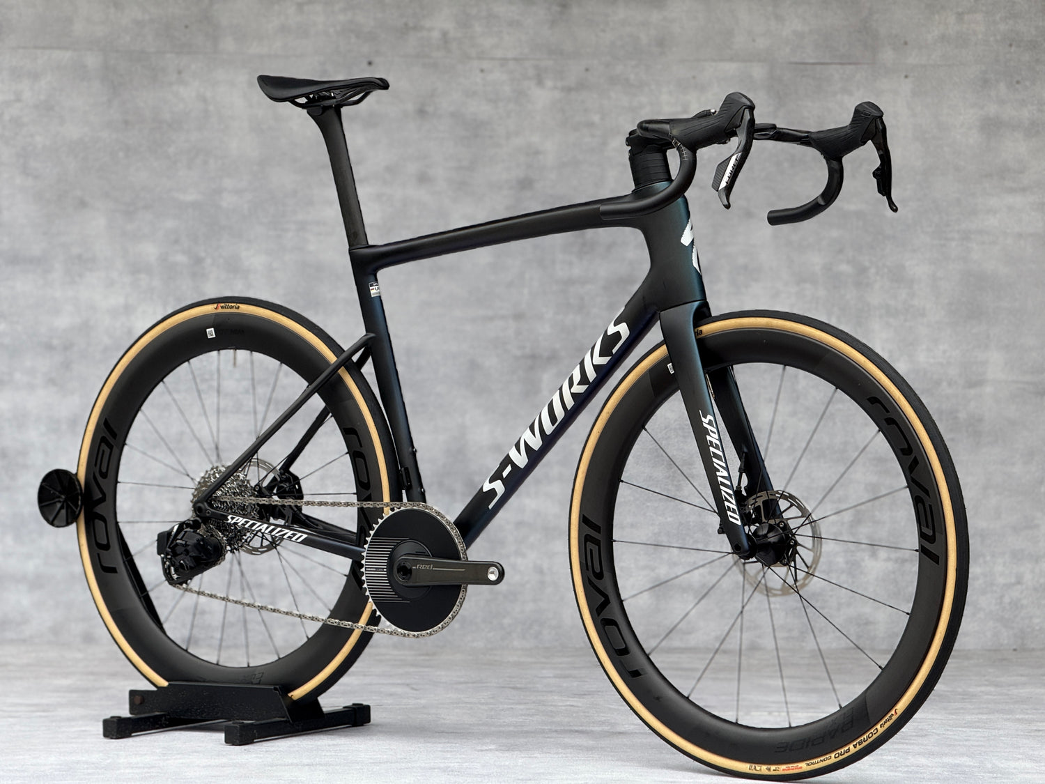 Deze S-Works Tarmac SL8 is volledig opnieuw opgebouwd met een nieuwe 1x12 SRAM Force afmontage. Het frame verkeert in uitstekende staat, en de wielen zijn licht gebruikt.