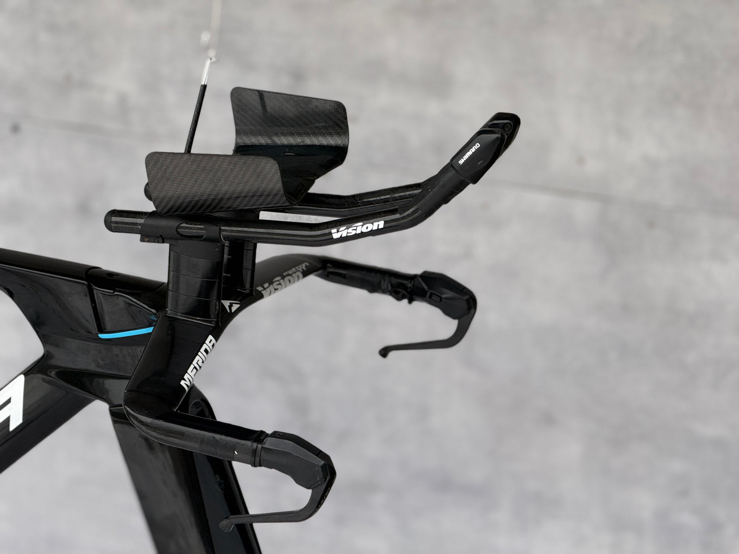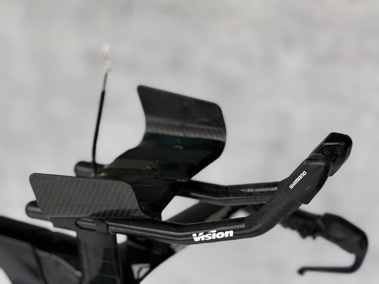 • Cockpit: Standaard Pro TT Cockpit (Carbon basebar + extensions, volledig verstelbaar)