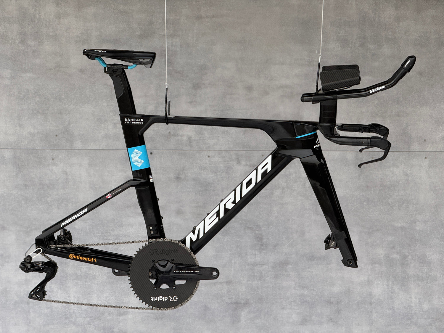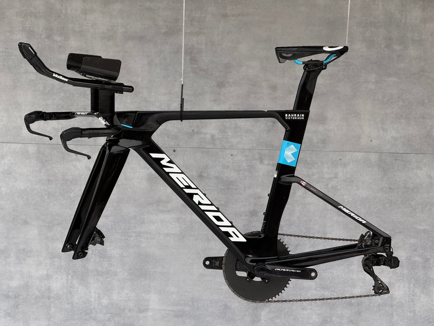 Zoekt u de ultieme upgrade voor uw tijdrit of triathlon? Dan is dit uw kans. Wij bieden een unieke partij Merida Time Warp TT (2025) fietsen aan, rechtstreeks uit de service course van Team Bahrain Victorious. Dit is geen kaal frame, maar een volledig opgebouwde fiets, voorzien van de absolute topcomponenten.