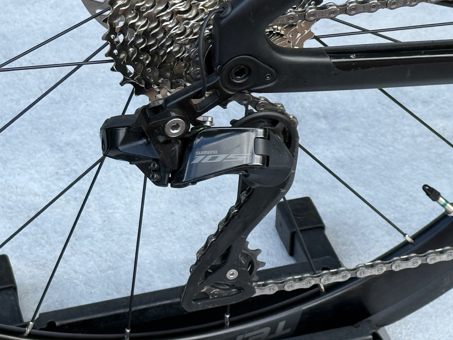 Shimano 105 Di2 12-Speed: De fiets is uitgerust met de nieuwste generatie elektronisch schakelen. De Shimano 105 Di2 biedt u 12 versnellingen en de feilloze precisie van elektronisch schakelen, waardoor u zich volledig op de weg kunt concentreren.