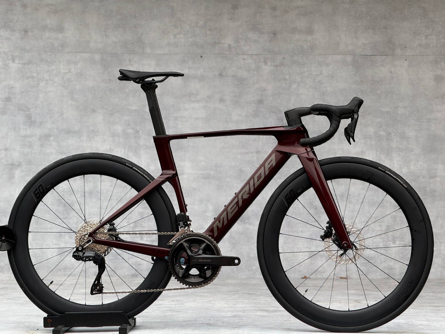 The bike is equipped with a Vision SC60 carbon wheelset with 60 mm deep rims, providing extra aerodynamics and speed on flat roads. Combined with Continental Grand Prix TR tubeless-ready tires, this delivers excellent grip, rolling resistance, and comfort.